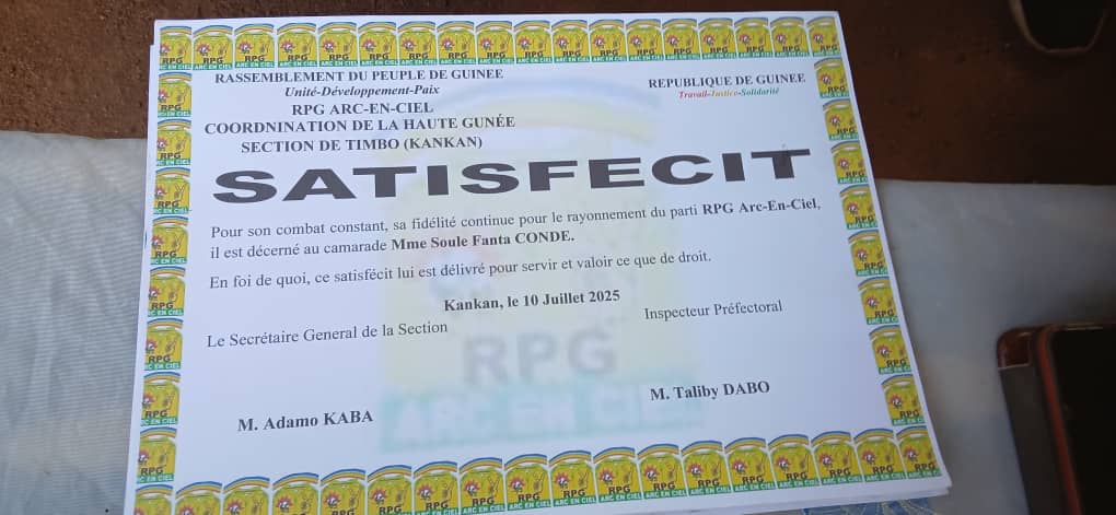 Kankan, 11 juillet (Infosbruts.com) – Dans une démarche de réconciliation et de cohésion interne, l’ancien coordinateur des campagnes du Rassemblement du Peuple de Guinée (RPG), M. Talby Dabo, a initié ce vendredi 11 juillet une tournée dans la commune urbaine de Kankan. L’objectif : rendre visite à des familles de militants malades ou endeuillées, pour leur présenter les salutations du parti, des condoléances et des dons symboliques composés d’enveloppes, de satisfécits et de supports médiatiques.