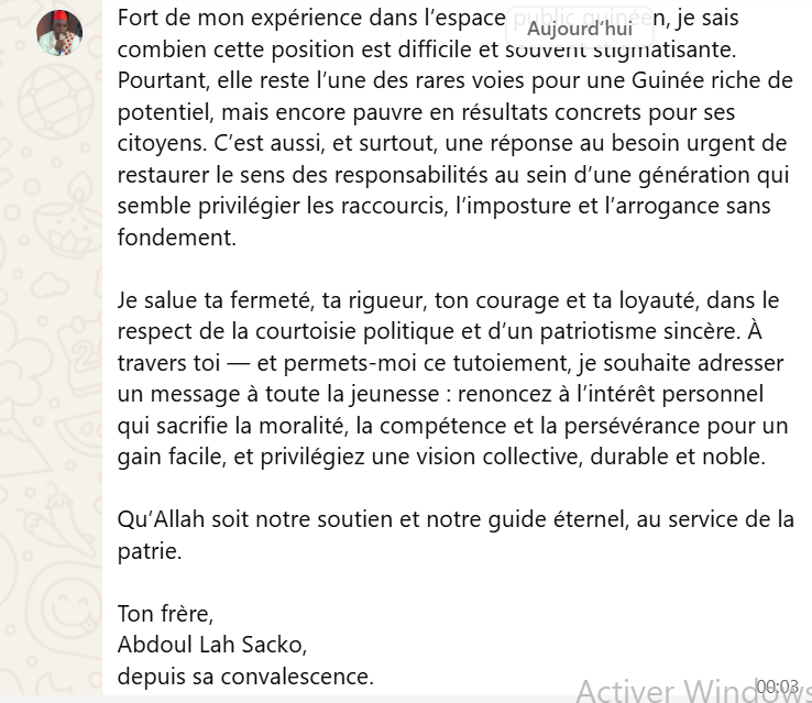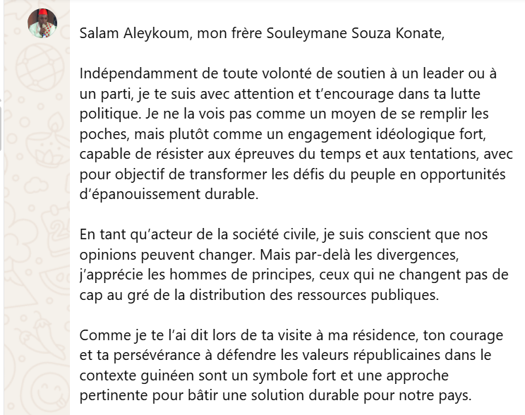 Depuis plusieurs années, Abdoul Lah Sacko est perçu dans les cercles proches du pouvoir comme un opposant déguisé en acteur citoyen. Ses positions tranchées, ses critiques régulières de l’exécutif et sa proximité avec certains leaders de l’opposition lui ont valu cette réputation d’opposant par procuration. En adressant une lettre de soutien aussi élogieuse à un cadre de l’UFDG — parti d’opposition historique — il renforce cette perception, volontairement ou non.