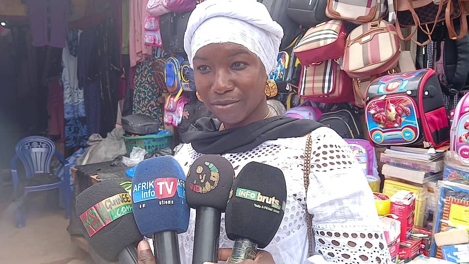 « Je suis venue pour acheter les sacs, les bics, les tenues… mais tout est trop cher. Nous lançons un appel au président Mamadi Doumbouya pour qu’il nous vienne en aide avant l’ouverture des classes. »