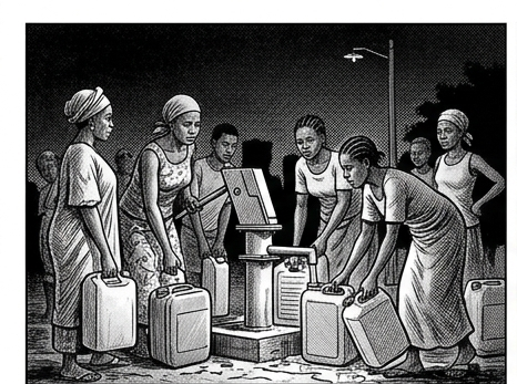 Tout commence par une scène banale devenue presque rituelle : des habitants s’activent pour puiser de l’eau, profitant du courant… quand soudain, noir total. Encore.