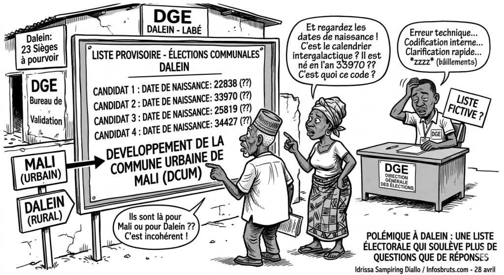 Labé, 28 avril (Infosbruts.com) – À l’approche des élections communales, la sous-préfecture de Dalein, dans la région de Labé, se retrouve au cœur d’une polémique inattendue. En jeu : 23 sièges de conseillers communaux à pourvoir, et déjà des interrogations sérieuses sur la crédibilité de certaines candidatures.