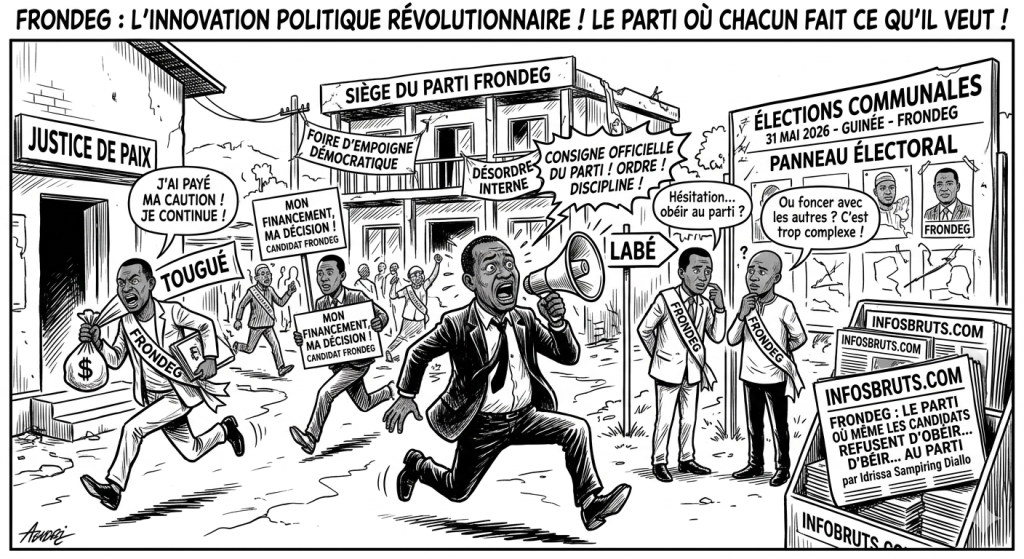 Guinée, 29 avril (Infosbruts.com) – Il fut un temps où appartenir à un parti politique signifiait suivre une ligne, une discipline, et parfois même une stratégie. Mais ça, c’était avant. Avant que le FRONDEG ne décide d’innover en inventant un nouveau concept politique révolutionnaire : le parti où chacun fait ce qu’il veut.